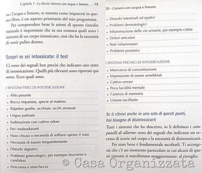 Nel libro l’autrice giustamente fa il paragone con l’abitudine che abbiamo di lavarci tutti i giorni il viso, i denti e il corpo. Per gli organi interni non cambia nulla, la doccia interna con acqua e limone è un vero e proprio lavaggio che manda via scorie e sporcizia accumulata e va fatto ogni giorno, meglio se al mattino, dopo il sonno.