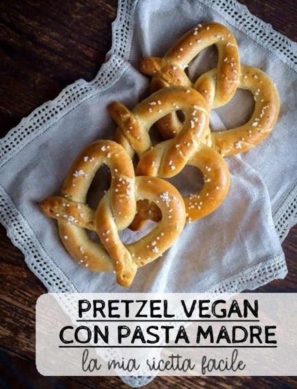 I Pretzel (o Brezel) sono dei pani croccanti tipici della cucina tedesca, in genere hanno burro o strutto e non sono vegani, non viene usato neppure il lievito madre, ma bastano poche modifiche alla ricetta originale per trasformarli leggermente, senza snaturarli, per adattarli alle nostre preferenze.