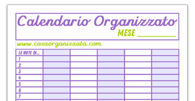 Calendario Organizzato: da stampare per la visione d’insieme degli appuntamenti familiari